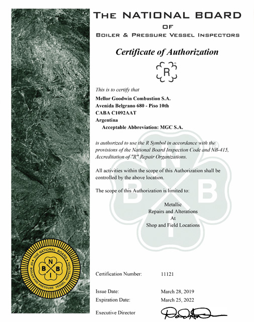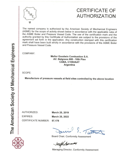 MGC es la primera y única empresa argentina en montar dos calderas de recuperación con estampa ASME, para un ciclo combinado Siemens de 850MW para la Central Térmica San Martín (Timbues)