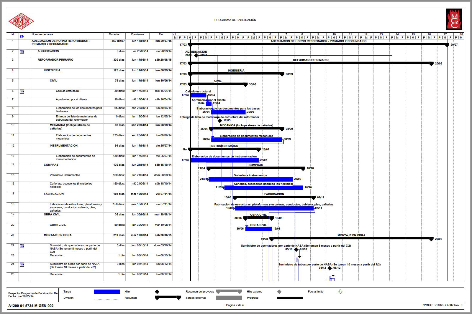 Provisión y supervisión de montaje y puesta en marcha de cuatro quemadores tangenciales para la Caldera Nº4 (CE MG VU50) para la Refinería de La Plata de YPF.