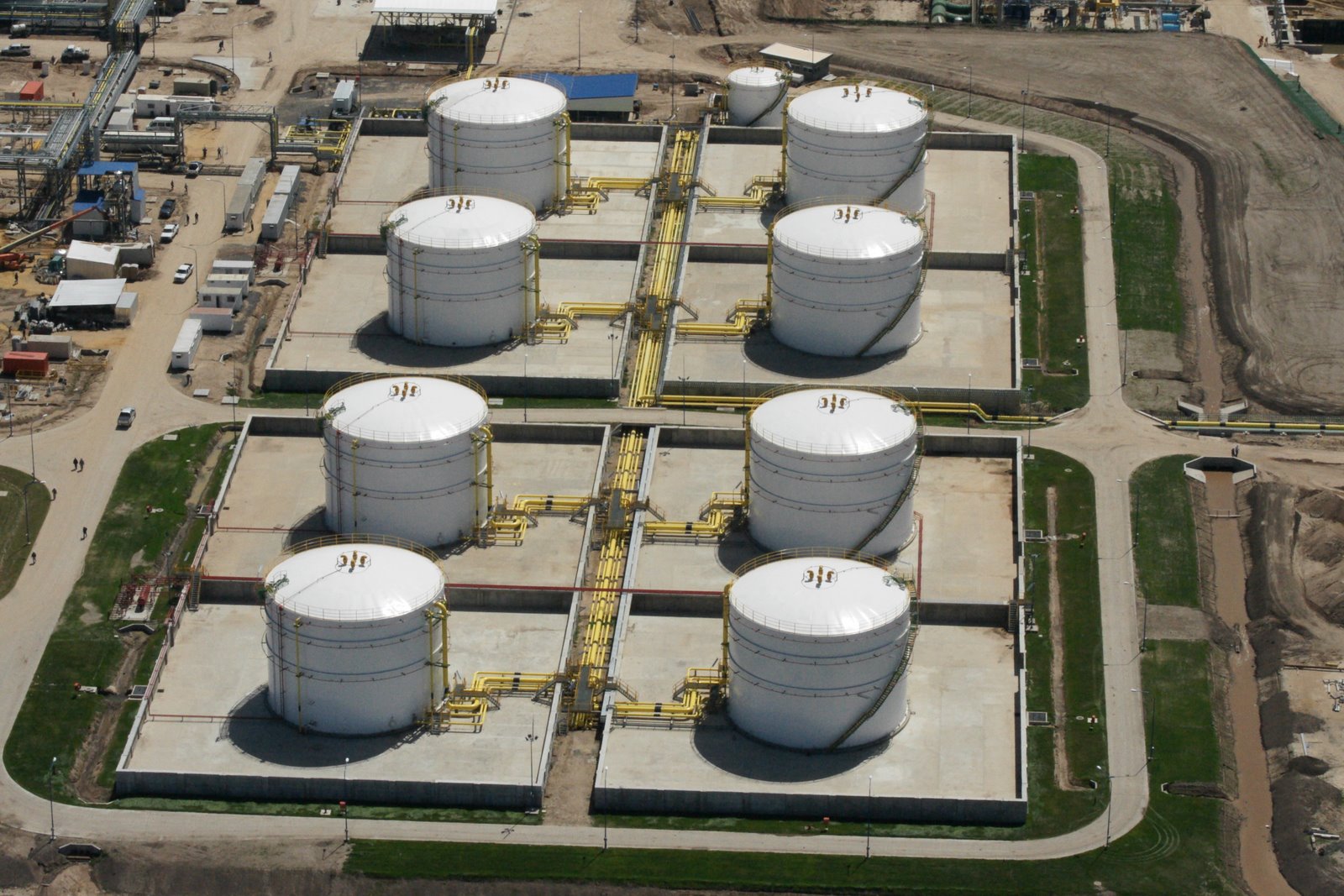 Montaje de 8 tanques de almacenamiento de Fuel Oil de 5000 metros cúbicos de capacidad, para el ciclo combinado de 850 MW de la Central Térmica San Martín (TIMBUES).